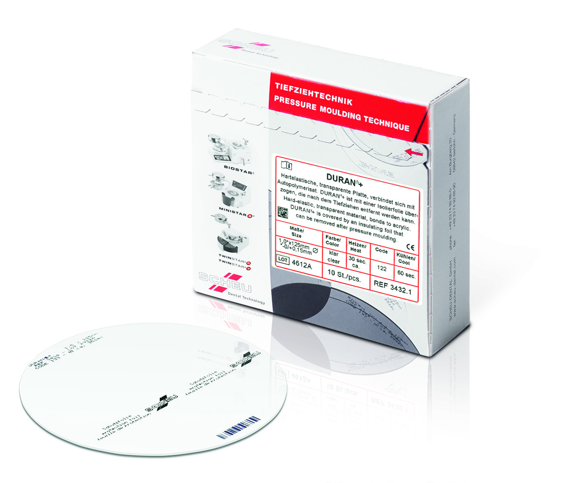 Hard-elastic transparent material, bonds to DURASPLINT and DURASPLINT LC acrylics. Apply LC-Primer prior to using DURASPLINT LC. With integrated insulation foil. No pre-drying.