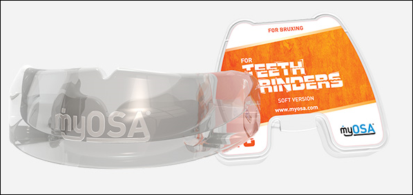 myOSA for TG from 15 Years The Myosa for Teeth Grinders - TG is specifically designed to provide an immediate protective barrier against night time teeth grinding and works best for patients who do not show any symptoms of jaw joint (TMJ) disorder. The appliance, which can be fitted in less than two minutes, fits firmly and comfortably over the upper teeth and provides a soft, flexible barrier that protects the teeth as well as the jaw joints (TMJ) from the effects of teeth grinding. The Myosa TG is recommended for night time use as well as during the day if necessary.Immediate diagnosis and treatment The Myosa TMJ appliance is specifically designed to act as a universal, initial diagnostic and treatment tool for jaw joint (TMJ) disorder. The appliance, which does not require any special fitting or adjustment, should be used one hour each day an overnight for a minimum of 30 to 60 days. This initial period of wear should enable the patient to determine how much continued use is needed to maintain symptom relief. By assisting to decompress the jaw joint (TMJ), correct mouth breathing and tongue posture as well as limit teeth grinding the Myosa TMJ alleviates symptoms by relieving pressure on the jaw joints and relaxing muscles around the jaw and neck.