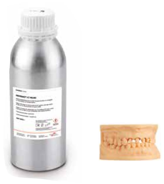 IMPRIMO LC Model Light-curing resin at the base of methacrylate for fabrication of high-precision dental models with smooth surfaces. Available in three colours for orthodontic and prosthetic applications, adapted to DLP systems with a light source of 385 nm or LCD systems with a light source of 405 nm.